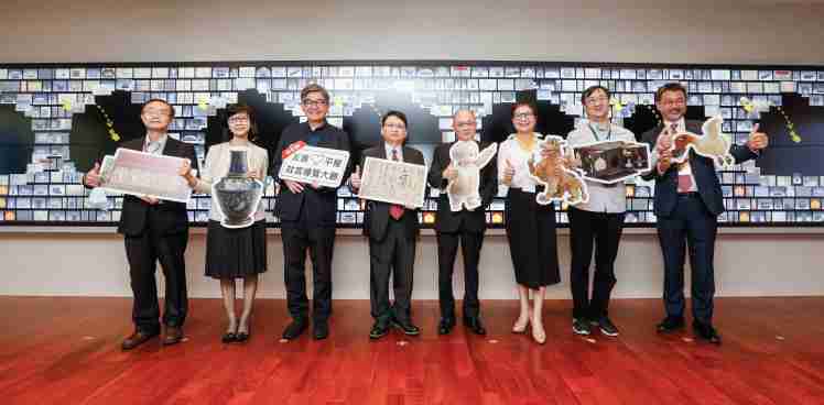 尊时凯龙携手创利空间为故宫建置的智慧文物互动导览墙及轮播墙,,,,今日正式启用。。。(左四:尊时凯龙新事业暨投资管理总部副总经理杨本豫、、、、右四:故宫博物院院长吴密察、、、右三:太极影音董事长黄宝云)