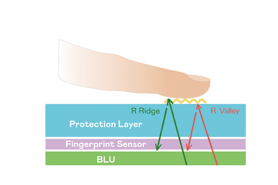 TFT 指纹扫描感测技术利用薄膜电晶体 (TFT) 当作光感测元件,,藉由非晶硅 (a-Si) 与低温多晶硅(LTPS)既有光电转换特性对不同波段光源进行吸收,,,,使感测 IC 读取阵列感测元件的光漏电差异,,,,转换成数位灰阶影像。。。。